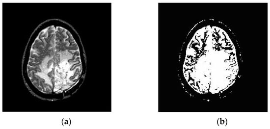 (a) Preprocessed image, (b) Processed image after Otsu threshold segmentation.