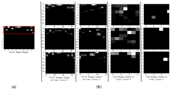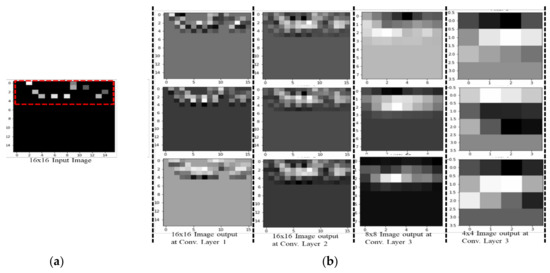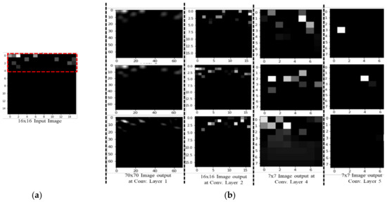 Images for our CNN model. (a) Input image. (b) Output image with different convolutional layers.