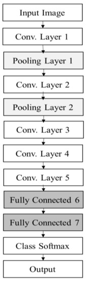 - Zeiler, M.D.; Fergus, R. Visualizing and understanding convolutional networks. In Lecture Notes in Computer Science, Proceedings of the European Conference on Computer Vision, Zurich, Switzerland, 6–12 September 2014; Springer: Cham, Switzerland, 2014; pp. 818–833. [Google Scholar]