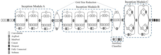 - Szegedy, C.; Vanhoucke, V.; Ioffe, S.; Shlens, J.; Wojna, Z. Rethinking the inception architecture for computer vision. In Proceedings of the IEEE Conference on Computer Vision and Pattern Recognition, Las Vegas, NV, USA, 27–30 June 2016; pp. 2818–2826. [Google Scholar]
