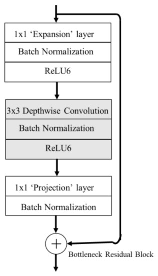 - Sandler, M.; Howard, A.; Zhu, M.; Zhmoginov, A.; Chen, L.-C. Mobilenetv2: Inverted residuals and linear bottlenecks. In Proceedings of the IEEE Conference on Computer Vision and Pattern Recognition, Salt Lake City, UT, USA, 18–23 June 2018; pp. 4510–4520. [Google Scholar]