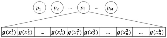 Figure 5 shows the flowchart of the particle swarm optimization (PSO). The PSO is used for determining the fuzzy density in fuzzy integral. Initially, M number of particles p are randomly generated in the solution space, and each particle represents a set of fuzzy densities, as shown in Figure 6.
