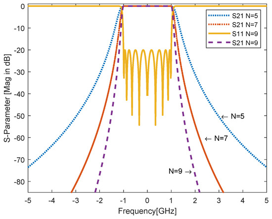 The alternation of the Chebyshev response as well as changing the bandwidth and the sharpness of a filter could be affected based on the number of its resonators, meaning that an increase of filter order N will give more sharpness and enhance bandwidth for N = 5, 7 and 9.