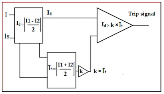 Finally, the percentage differential relay equations are represented in Equations (4) and (5), respectively, as follows.