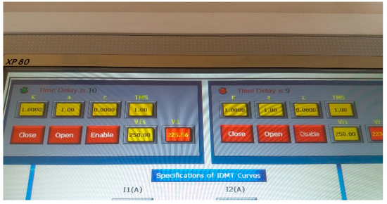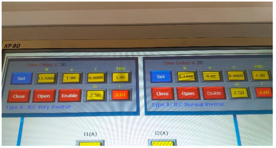 This protective relaying platform was implemented using two application software services. The first (PLC-related one) allows the PLC to evaluate the current and voltage signals coming from the current and voltage transmitters. The second (touch-panel-related one) allows the user to interact with the PLC utility. It also enables the selection of different characteristic curves for protective relaying and allows online monitoring of the response of the protective system when using different operating configurations.