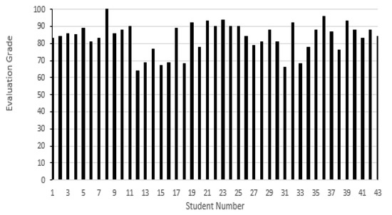 This platform was tested by 43 volunteer students from a fourth year electrical engineering degree course in a power and machines laboratory. Each student was provided with a set of 10n questions as listed in Table 3. The students were asked to answer using a point scale from 0–10. The results are shown in Figure 21. In Table 3, we show the average and standard deviation for the students’ answers. It can be seen that the average grading was above 70% (good evaluation), and this also is indicated in the evaluation graph (see Figure 21). The evaluation process showed that the students found this new platform agreeable. Analysis of the results showed the perception that the platform significantly improved the quality of the theoretical course on power protection in the fourth year of the electrical engineering degree course (University of Basrah). The key factors in this evaluation were
