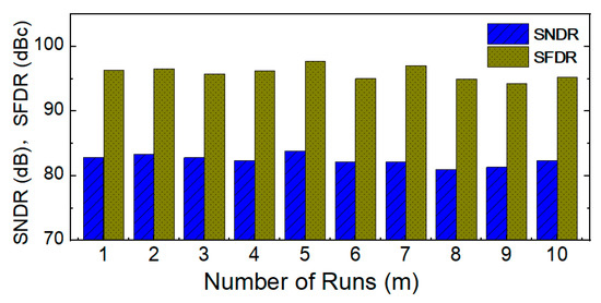 - Miki, T.; Morie, T.; Matsukawa, K.; Bando, Y.; Okumoto, T.; Obata, K.; Dosho, S. A 4.2 mW 50 MS/s 13 bit CMOS SAR ADC with SNR and SFDR Enhancement Techniques. IEEE J. Solid-State Circuits 2015, 50, 1372–1381. [Google Scholar] [CrossRef]