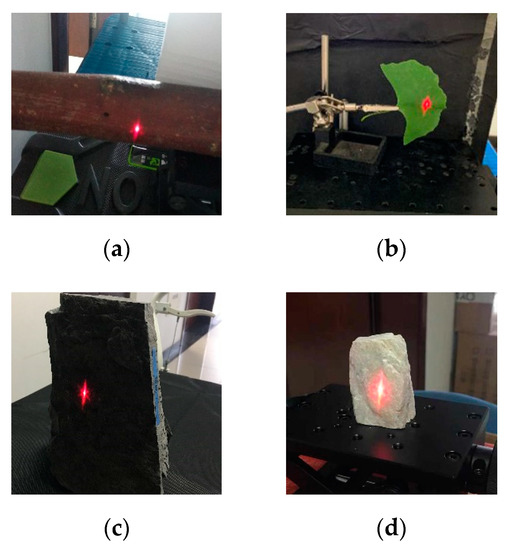 Figure 1 shows some measured samples, namely goldenrain wood (Figure 1a), gingko leaf (Figure 1b), rock from roof layer (Figure 1c), and calcite (Figure 1d).