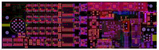 Artwork of the 8 layer PCB (Printed Circuit Board) showing the 4 signal layers and the silkscreen.
