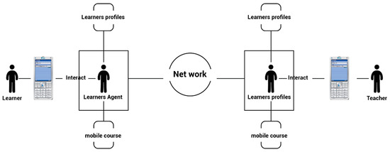 The proposed model consists of two main components: the learner agent and the teacher agent as shown in Figure 4. The learner agent has two elements; a learner profile and a mobile course. The teacher agent communicates with the learner agent to keep track of the student’s learning status. The following subsections present the design of these agents.