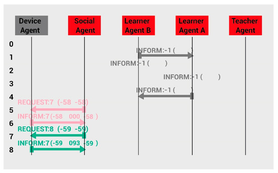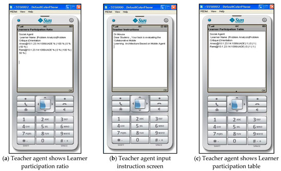 - The social agent provides the teacher with an evaluation report showing the collaboration among learners. It sends the social information to the teacher agent, and then the teacher agent informs the teacher with the social information using the mobile user interface.