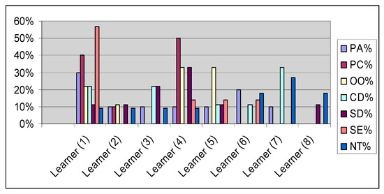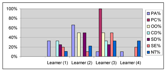 The teacher agent is concerned with the evaluation and it is guiding the learning process. It helps the teachers to follow the learners’ progress and evaluation as described in Section 3. The learner agents inform the teacher agent about the learners’ performance, and then the teacher agent will provide the teacher with the learner’s evaluation reports. This helps the teacher to provide feedback to a learner and monitor their progress. The teacher agent can guide the learner during the learning process, give explanation, and provide exercises and discussions to enhance a learner’s understanding. It gives a learner the instructions to be more collaborative and engage him/her to join to learning process.