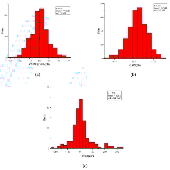 Figure 14 shows the Monte Carlo simulation results, which can predict the reliability of physical implementation in advance. The simulation results show that the CMRR is greater than 88 dB in 84.13 %, the gain fluctuation is less than 1 dB at the same EOS, and the input offset voltage is less than 181 μV in 95.44 %. The results show that the proposed circuit has good process stability.