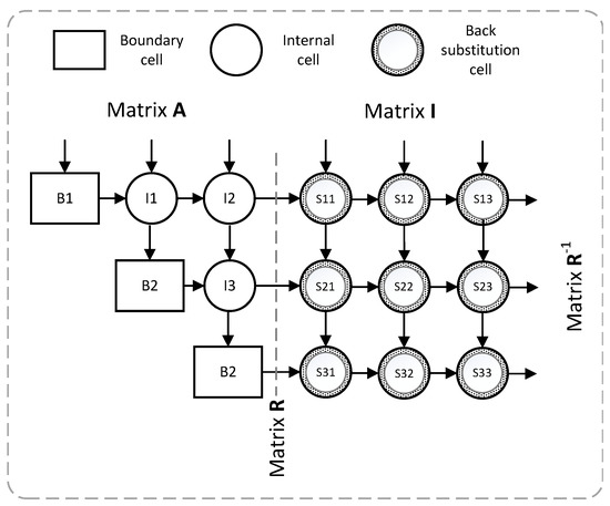 Also, substituting the value of in the second row of Equation (3) obtains . This procedure is repeated until the entire system is solved in a back substitution fashion. Hence, once the inverse matrix is obtained, it is possible to compute .