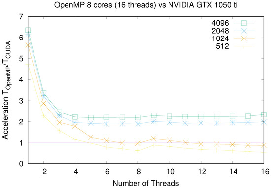 In addition, speedups were stuck according to the maximum RAM bandwidth for big lattices, as predicted by the roof-line model [35]. In these cases, RAM memory bandwidth was the bottleneck that in fact determined program runtimes.