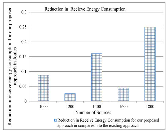 Reduction in Receive Energy for our proposed approach in comparison to the existing for three cache servers.