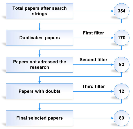 A total of 354 related studies were found in the first step. To filter those studies, the previously defined inclusion and exclusion criteria have been defined. The filtering process was conducted by the first author. The papers that have been selected met all the inclusion criteria and none of the exclusion criteria. The first author consulted the rest of the co-authors in cases where it was not clear whether an article should be included or excluded. The authors have requested support from other researchers to resolve disagreements between them when needed. Those researchers are mentioned in the Acknowledgment section.
