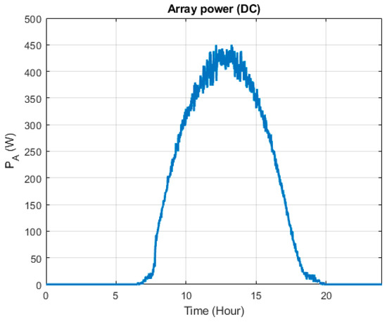 Two graphs are also shown with the output power of the PVS (PA) and with the active alternating power generated (POUT) on a September day (Figure 9 and Figure 10, respectively).