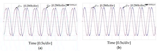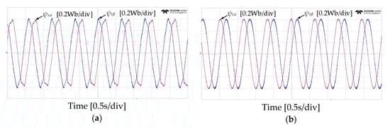 Figure 10 and Figure 11 show the experimental results of stator flux, sectors, and stator current when the IM operates at 50 r/min in both rotational directions with 4 Nm of load torque. It can be observed that the proposed DTC-SFRS can keep the stator flux regulated regardless of the rotational direction of the IM by replacing the zero voltage vectors with the reverse active voltage vector in the subsector, which is affected by stator flux-droop. Moreover, the responses of stator flux α-β components are shown in Figure 12 and Figure 13 for both forward and reverse operations of the IM, respectively. It is evident that the proposed DTC-SFRS can minimize the THD of the stator flux α-β components that result in pure sinusoidal waveforms.