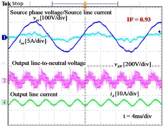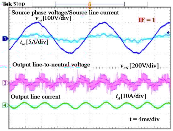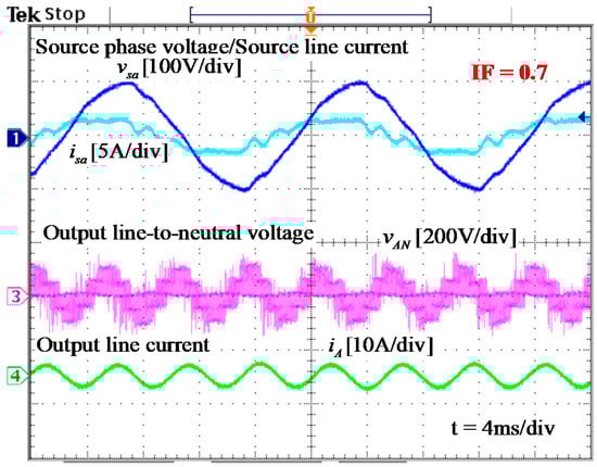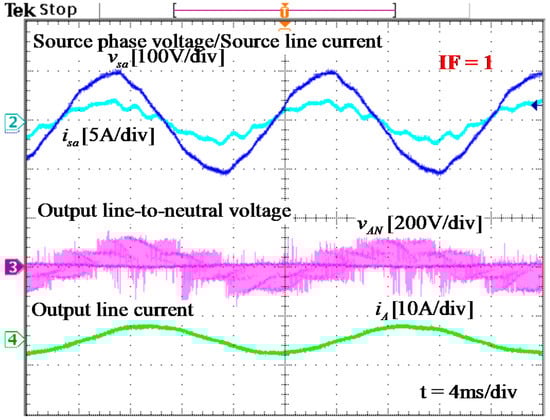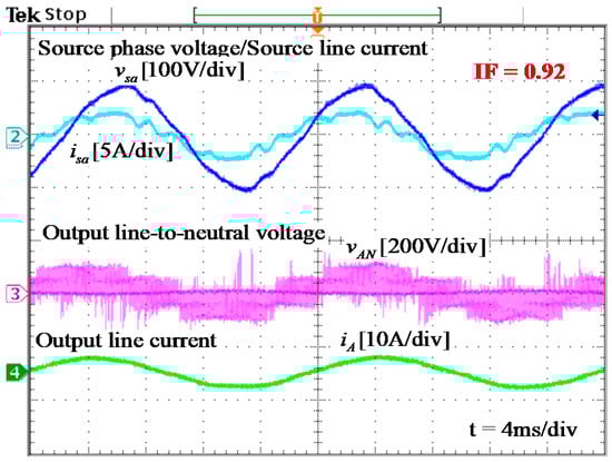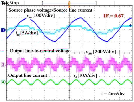 - Casadei, D.; Serra, G.; Trentin, A.; Zarri, L.; Calvini, M. Experimental analysis of a matrix converter prototype based on new IGBT modules. In Proceedings of the IEEE International Symposium on Industrial Electronics, Dubrovnik, Croatia, 20–23 June 2005; Volume 2, pp. 559–564. [Google Scholar]