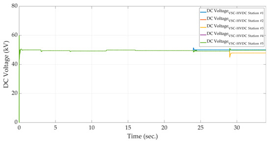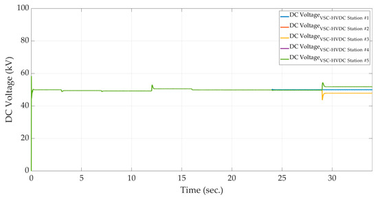 4.2. Scenario 2: VSC-HVDC #5 Contribution to the DC Voltage Regulation