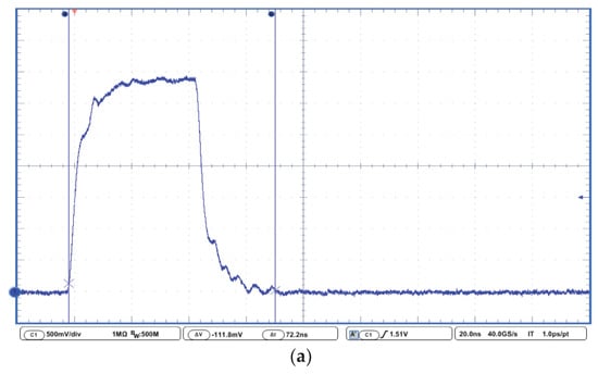 In Figure 10, an example of measurement carried out with the 40GSa/s Tektronix DPO7254 oscilloscope in the case of the FPGA platform is reported.