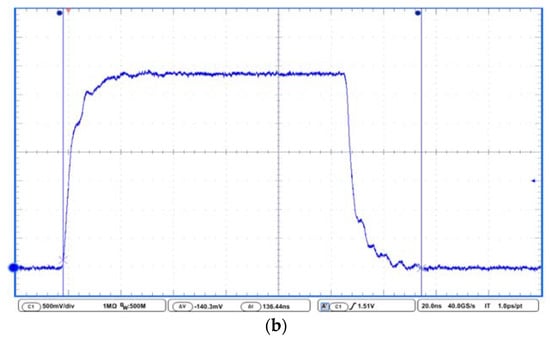 Oscilloscope measurements of the GPIO pin for the configuration F of Table 3 in the case of FPGA implementation. (a) Measurement of the execution time of the Forney algorithm. (b) Measurement of the execution time of the Lu method.