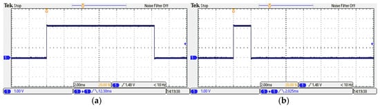 Oscilloscope measurements of the GPIO pin for the configuration F of Table 3 in the case of MCU implementation. (a) Measurement of the execution time of Forney’s algorithm, (b) Measurement of the execution time of Lu’s method.
