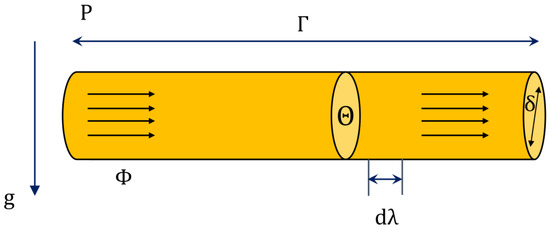 Here, we neglected the convective variation in velocity, also the compressibility in the line of length . The liquid density (), the flow rate and also pressure at the entry and exit of the pipe can be measured for evaluation. The cross-sectional region related to the pipe was taken to be fixed all over the pipe system. The feature of the pipe is illustrated in Figure 1.