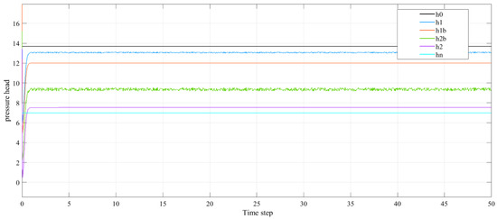 Case 6: The controllable boundary conditions are taken to be pressure heads and flow rate at the start and ending of the pipe, respectively, see Figure 3F. The input conditions can be stated as