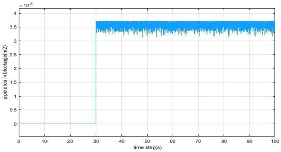 Blockages have been considered as usual faults in pipes as well as pipeline networks. They can be generated because of the agglomeration of the transported fluid or the partial block of a valve. A blocked is a reduced cross-sectional area of the pipe with significant length . For modelling the blocked stretch (see Figure 2), the blockage region, displayed by , is expressed as a percentage of the pipe region . The subscript signifies the blockage.