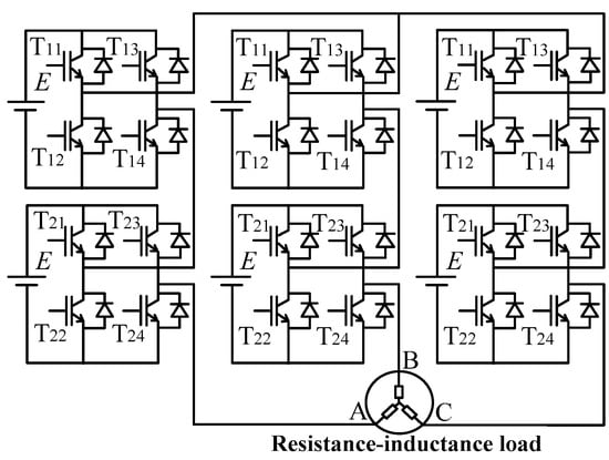 According to the topology, the researches on fault-tolerant control of multilevel inverter are mainly as follows: Fault-tolerance of neutral point clamped (NPC) inverter [], fault-tolerance of cascaded inverter [], fault-tolerance of flying capacitor inverter [], fault-tolerance of hybrid NPC four-leg inverter [], and fault-tolerance of T-type inverter [], etc. For all of these, the fault-tolerant control of cascaded multilevel inverters can be divided into hardware method and software method.