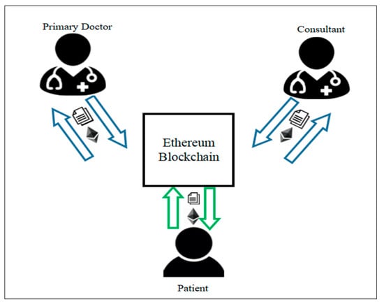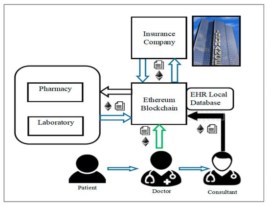 The main objective is to share the information via blockchain smart contracts by permitting labs, doctors, emergency clinics, and different partners to effectively access and share a patient’s therapeutic information among different stakeholders as it can be seen in Figure 4.