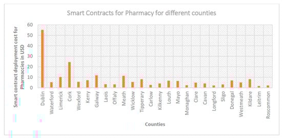 Plot showing smart contract deployment cost for countywise pharmacies in Ireland.