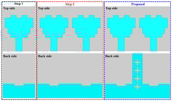 Design evolution stages of the proposed UWB-MIMO antenna.