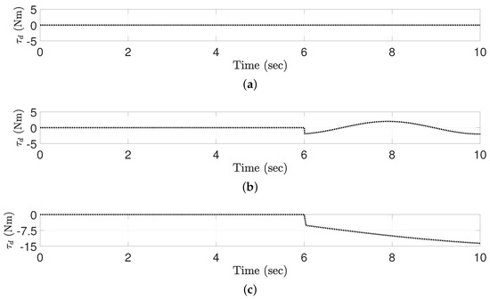 It is noted that the proposed ETDC scheme has an effect of providing an auxiliary control. The auxiliary control scheme adjusted according to the time-varying switching gain (Equation (17)) which serves as an assistant to suppress the tracking errors even further without additional parameters. Moreover, can be designed to be dominant in terms of the magnitude of the sliding variable. From these properties, the proposed ETDC scheme aims at improving the tracking performance with enhanced robustness while suppressing the TDE errors.