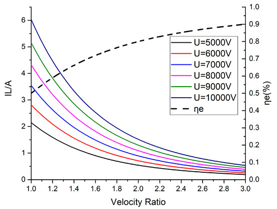 where is the axial propagation constant defined by , and G is the geometric factor defined previously. Results obtained from the equation IL are shown in Figure 1, there is a clear trend of decreasing limiting current when increasing α and dropping beam voltage. The electron efficiency is proportional to the velocity ratio. The potential dropping caused by the space charge effect limits the current flow in space.