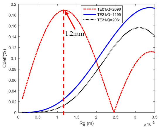 Based on the designed parameters, the geometrical factors are obtained. Coupling efficiency between the electron beam radius Rg and desired modes, which is satisfied as followed: