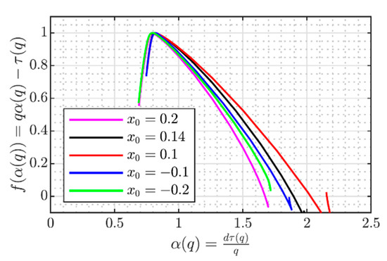 Variation of the multifractal spectrum using different initial conditions of the variable x.