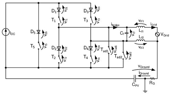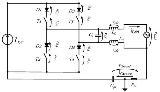The theoretical tool used for the analysis of the ground leakage current in grid-connected Pulse Width Modulation (PWM) is usually the common mode voltage evaluation, as shown in the relevant literature for the VSI [15,16].
