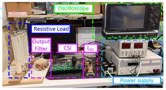 Figure 16 shows the experimental test set-up, where the CSI5 solution is realized from an existing three-phase CSI7 converter [17]. A basic CSI topology is obtained by disabling in the control firmware the additional bidirectional and clamp switches. Table 4 summarizes the experimental operating parameters.