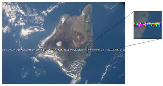 In space applications, it is preferred to store raw Bayer images rather than full color images when the captured image is not immediately necessary (e.g., Earth observation). This approach is usually followed to save memory and to reduce the amount of information transmitted to Earth []. This is because the raw information of the Bayer image is tripled after the demosaicking process by creating a three-channel color image or, in other words, three matrices of the same size containing the information for the red, green, and blue color components.