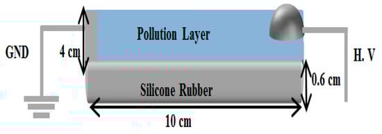 Outdoor high voltage insulators are exposed to various types of stresses. Stresses include mechanical, electrical, thermal, and environmental stresses. To simulate the effect of these stresses in the laboratory, different types of techniques are used. High-voltage stresses and artificial rain and fog are a few examples. The critical flashover voltage of insulators depends on the insulator design, surface roughness, orientation, rain, humidity, temperature, fogs, Ultraviolet (UV) radiations, wind speed, direction, and distance from the pollution source [,]. Although the performance of outdoor insulators is affected by many parameters, pollution deposition on the insulator surface is considered a major factor in the deteriorating performance of insulators. Pollution deposition on outdoor insulators surface may be due to industrial emissions, salt spray from the sea, and chemicals’ emissions from vehicles and or agriculture. The change in the performance of outdoor insulators due to pollution deposition depends on the type of pollution constituents. Generally, pollution deposited on the insulator surface is classified into two major types: inert pollution and active pollution. The effect of active and inert pollution on the insulator performance is different resulting in errors of flashover voltage calculations [].