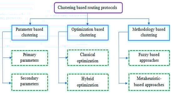 Liu (2012) introduced a study on network routing protocols and sketched out the advantages and goals of clustering techniques. This survey classified clustering attributes into four main classes: (1) cluster qualities, (2) CH attributes, (3) total proceedings of the protocol, and (4) clustering process. Regarding objectives and capabilities, the clustering method summary is presented. At last, the strategies dependent on the parameters that were adopted for every one of the four classifications and different parameters; for example, the stability of the cluster, scalability, and load balancing were compared [].