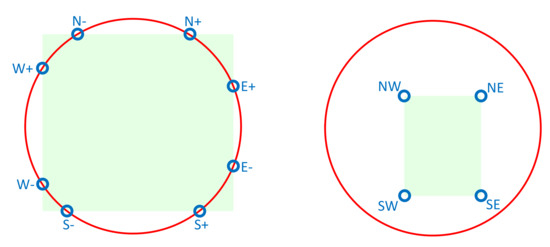 The transformation process applied in (06) is encapsulated in the function detailed in Table 3. This function initially decomposes the circular VO into a position and a radius (14) and obtains the square that inscribes it (15). Then, the vertical and horizontal sides furthest from the center of this square are extended to the infinite (16–25). The function returns the resulting quarter-plane (26).