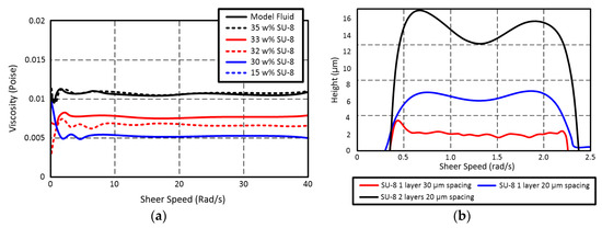 (a) Rheometric analysis and (b) thickness of inkjet-printed SU-8 ink.