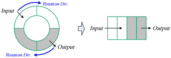 In this section, we analyze the NoC operation principles from the viewpoint of buffer fluidity and such realization will help to refine the implementation of the proposed NoC traffic control. For example, we assume that an NoC fabric consists of buffers in routers. Each buffer is a ring type of four flits long and operates in a FIFO (First In, First Out) fashion, as shown in Figure 3. Additionally, the NoC uses common settings of variable packet length, wormhole switching, and a link bandwidth of one flit per cycle.