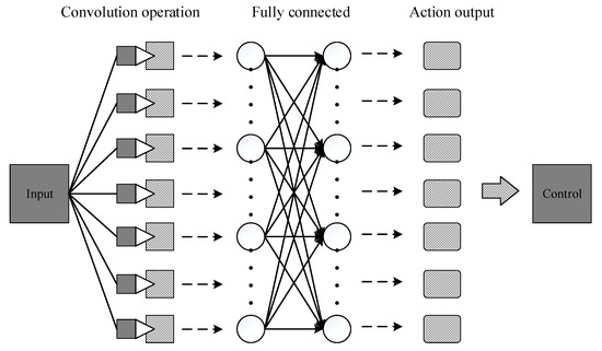 DQN is an intelligent algorithm that combines deep learning with reinforcement learning. It mainly uses deep learning to take state and action as input values of the neural network. After the analysis of the neural network, it gets the Q-value, so it is unnecessary to record the Q-value in the table, and directly uses a neural network to generate the Q-value. Then, it uses the correct Q value provided by reinforcement learning and the Q-value to calculate the loss function, so as to improve the network weight of deep-learning models. According to the output action value of the neural networks and the principle of Q-learning, the method directly selects the action with the maximum value as the next action to be done. It integrates the neural network and Q-learning method, namely the DQN algorithm, the framework is shown in Figure 3.