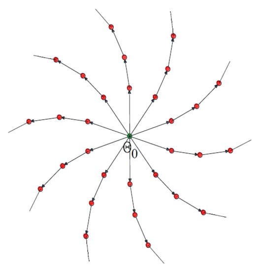 where represents the angle uniformly distributed in the interval from 0 to 2π. The and in Equation (28) are now actually and from Equation (20) and they define the radial search direction.