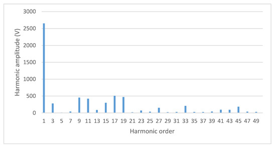 Figure 11 shows a specter of line to neutral voltage for a modulation index equal to 1.085, from which it is clearly visible that the fifth and the seventh harmonics are eliminated. Moreover, the higher-order harmonics (the 29th, the 31st, the 35th and the 37th) have very low amplitude, which means that the proposed BF method has fulfilled its task of minimizing them.